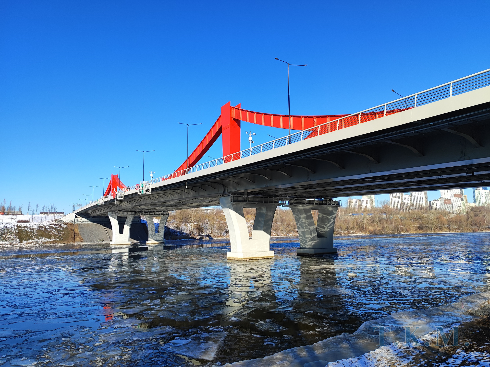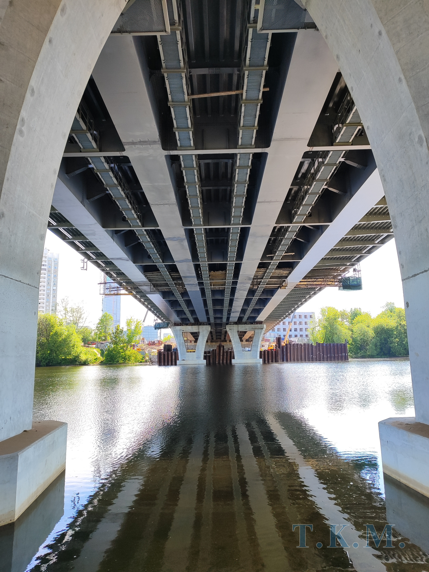 - Конструкция пролетного строения - комбинированное, неразрезное, металлическое с ортотропными плитами проезжей части и тротуаров